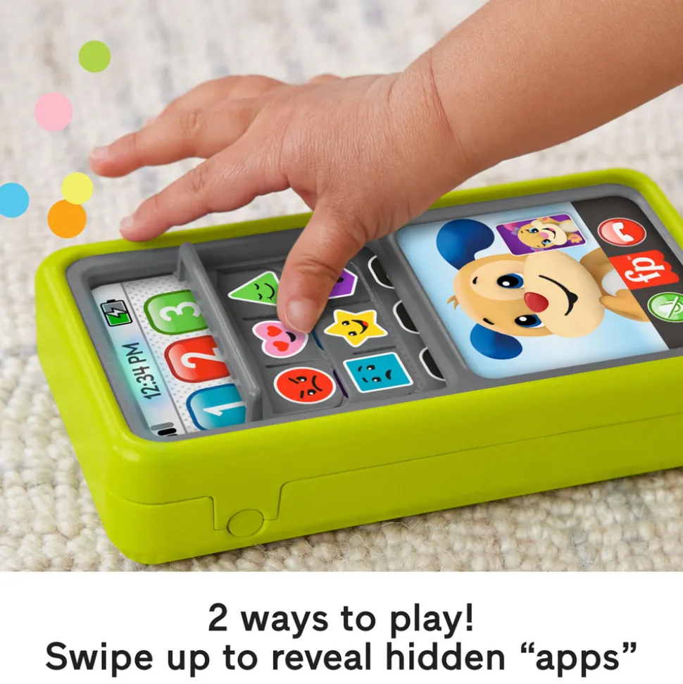 Stryg op for at lære på den sjove måde med Laugh & Learn®-legetøjet 2 i 1 skub og lær-smartphone – mobil telefon fra Fisher-Price®. Dette interaktive legetøj ligner den ægte vare og har dit barns Laugh & Learn®-venner, Puppy og Sis, samt to indlæringsfunktioner med “app” og talknapper, dit barn kan trykke på for at aktivere lys, sange og lyde. Når tumlinger trykker, skubber og skifter mellem aktiviteterne på legetøjstelefonen, udvikles og trænes deres finmotorik, mens lærerige sange og sætninger introducerer dem for tal, at tælle, former, farver og meget mere.