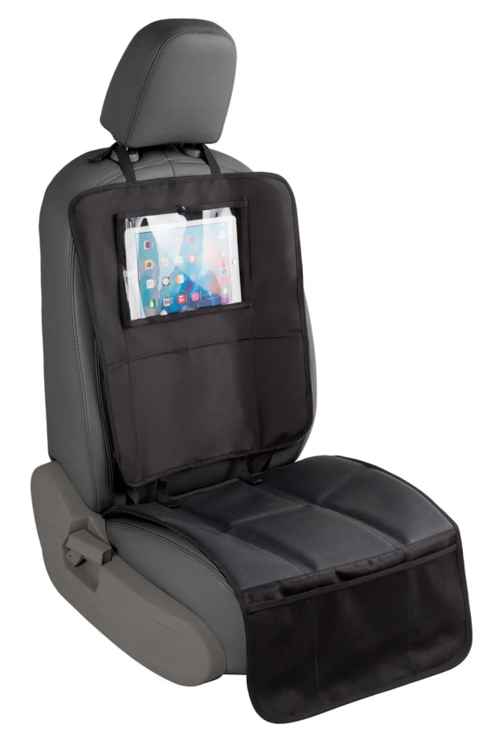 Smart 3-i-1 sædebeskytter som består af to dele – sæde og ryg. Kan bruges som fuld sædebeskytter fx under autostol på sædet, kun som sædebeskytter under autostolens bund eller som organiser og ryglænsbeskytter mod små beskidte sko bag på forsædet.