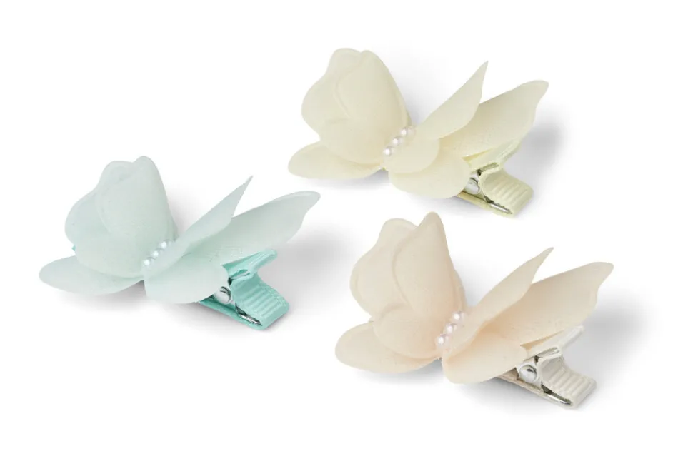 3 pak sommerfugl hårspænde i melon, mint og gul