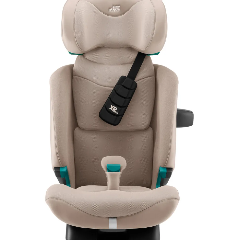 - Autostolen beskytter dit barns nakke ved en frontal kollision med den stødabsorberende XP-Pad i skum. I en ulykke reducerer den en brat fremadrettet hovedbevægelse med op til 30%* og forhindrer, at dit barns hage rammer brystet.