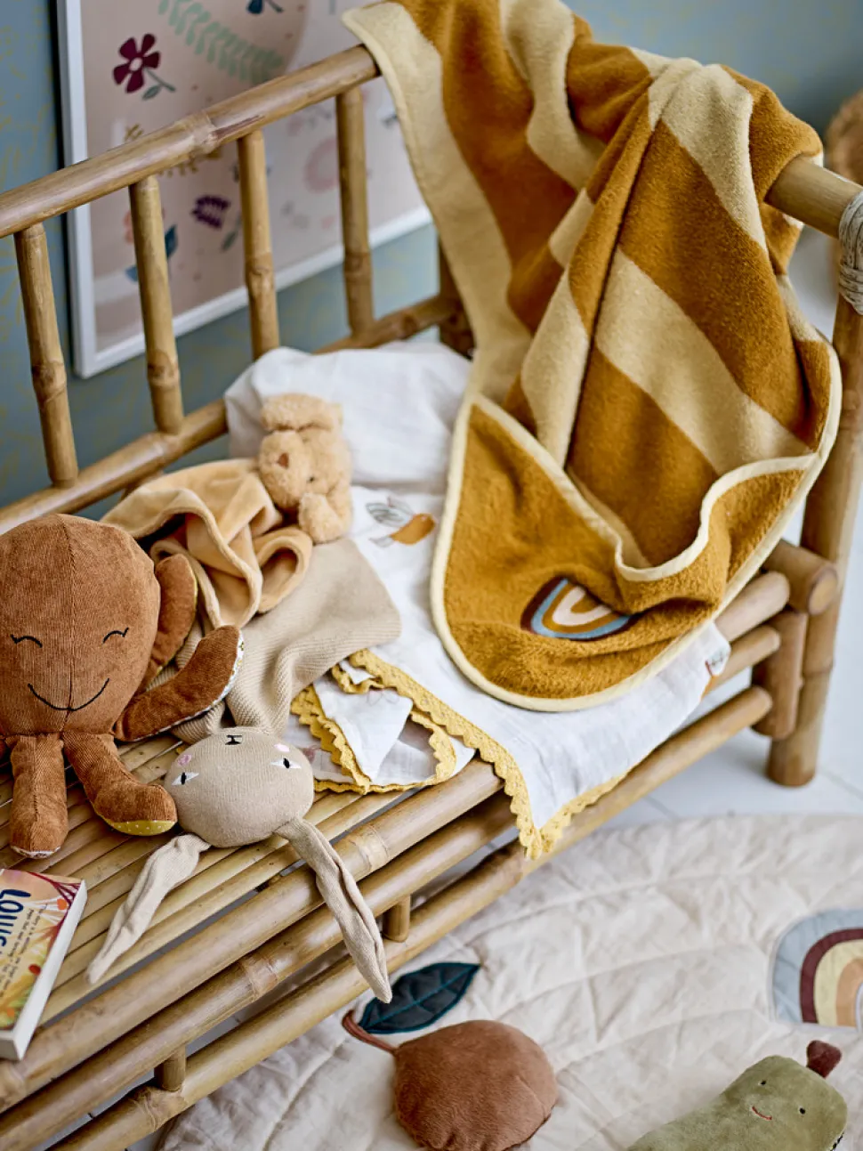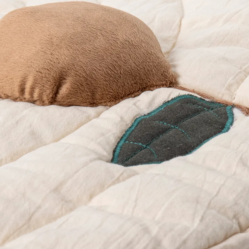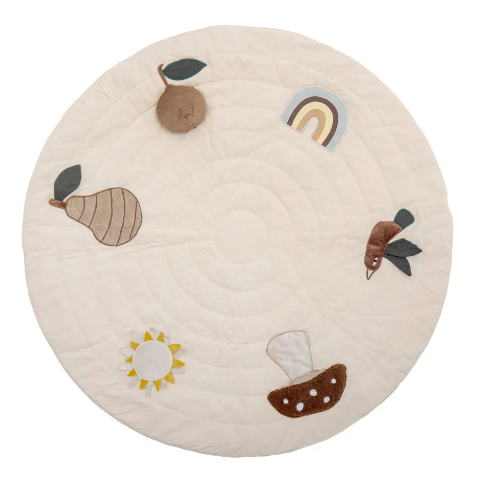 Agnes Legetæppet fra Bloomingville MINI er det fineste lille legetæppe med søde figurer, der alle lægger op til at barnet skal røre og udforske. Appelsinen giver en fin lille lyd hvis man trykker på den og blade på pæren knitrer ved berørelse. Der er flere bløde overflader, som der er dejlige for barnet at røre ved. Samtidig er tæppet lavet i afdæmpede farver, der kan passe ind i ethvert af hjemmets rum. Legetæppet er også perfekt som gaven til de nybagte forældre.