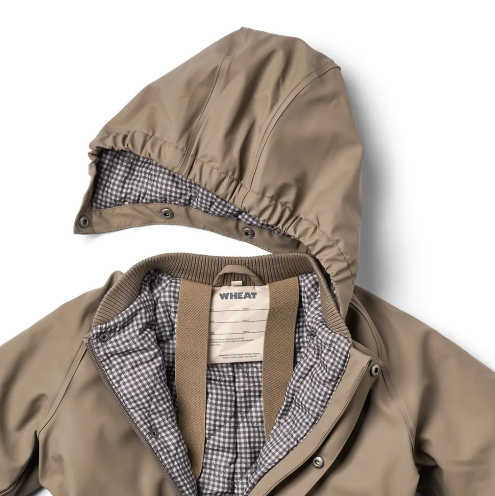 Denne termo regndragt til børn er åndbar, vandtæt og har let polstring, hvilket gør den perfekt til det evigt skiftende vejr. Wheat’s populære termo regndragt er en sand vinder i dit barns garderobe. Dragten er lige, hvad dit barn har brug for som overgangsdragt, når sæsonen skifter. Dragten er i åndbart polyurethan (PU) materiale og er unik, da den holder dit barn både tørt og varmt på en og samme tid.