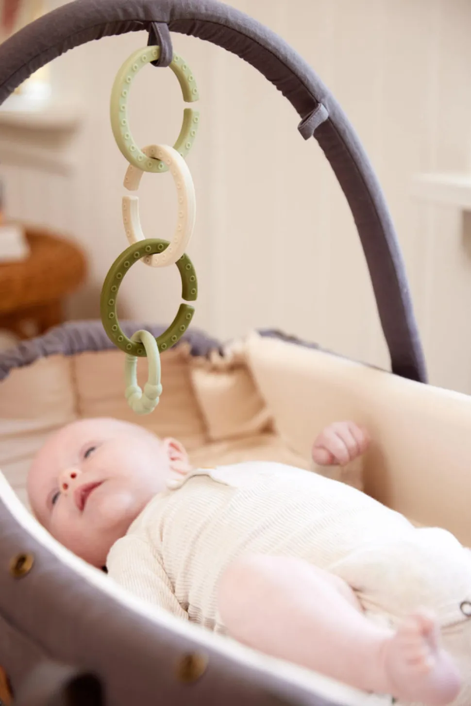 Aktivitetsbøjlen er fremstillet af blød GOTS-certificeret økologisk bomuld.