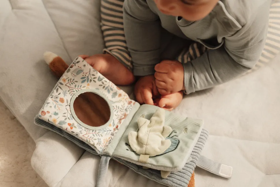Kig ind i Forest Friends fortryllende verden! Denne aktivitetsbog vil helt sikkert blive en kær følgesvend. Med spændende etiketter, krøllede teksturer og et spejl er denne designet til at fange dit barns sanser side for side. Sæt blot løkken fast på barnevognen for at holde den sikkert på plads under jeres udflugter.
