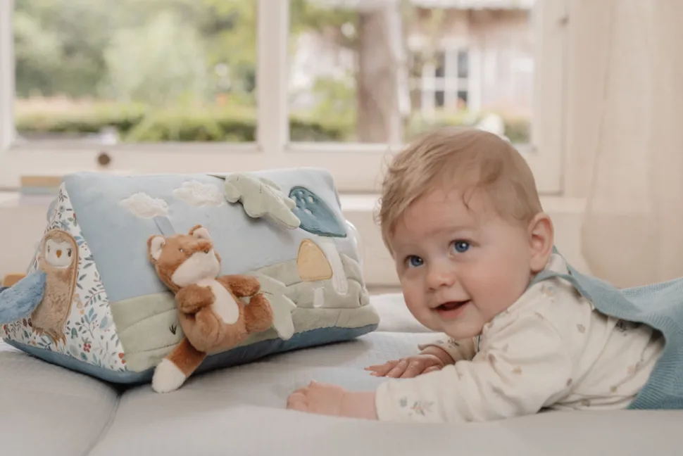 Den store aktivitetstrekant er fyldt med søde og sjove aktiviteter der kan stimulerer og aktiverer din lille. Det bløde materiale føles fantastik for at røre og de forskellige aktiviteter styrker hånd-øje koordinationen. Der er så meget at røre, føle og gribe fat i at den aldrig bliver kedelig.
