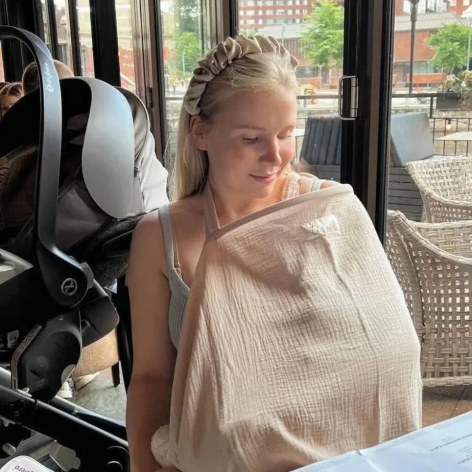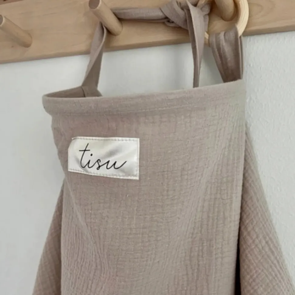 TISU ammesvøb giver mødre en bedre mulighed for at amme hvor som helst når de er på farten – butikker, caféer, ja alle steder. TISU ammesvøb hjælper dig med at skabe en behagelig og privat atmosfære, mens du ammer; for dig og din baby. Bare tag ammesvøbet over dit hoved, og du er klar til at begynde at amme! TISU ammesvøb er et førsteklasses produkt lavet af let vaskbart 100% musselinbomuldsstof og designet til at være let og åndbart. Stor halsudskæring giver dig direkte øjenkontakt med din elskede baby, så han eller hun altid kan se dig smile!Opbevar dit TISU ammebetræk med den matchende pose i en pusletaske, eller fastgør det til vognen for at have det med dig på farten!