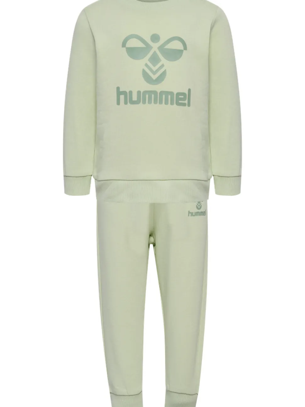 ARINE CREWSUIT er skabt med familiens mindste i tankerne. Sættet er fremstillet af økologisk bomuldsjersey for at give dem fremragende åndbarhed, komfort og fleksibilitet. Dette hummel joggingsæt har en justerbar snøretalje og kanter ved ankler og håndled, så stoffet ikke glider op.