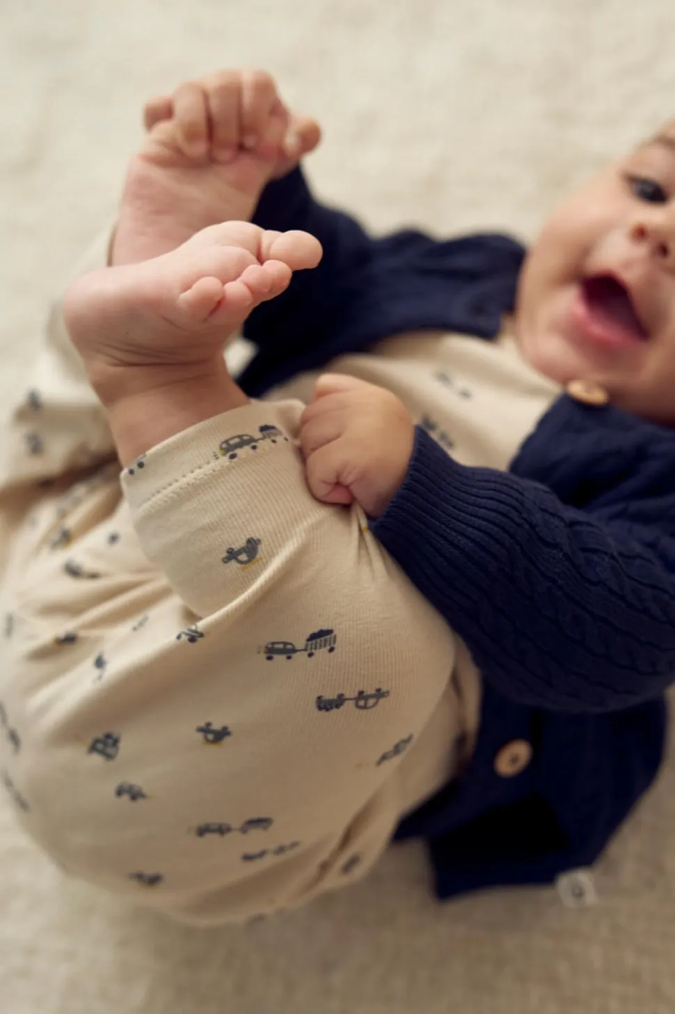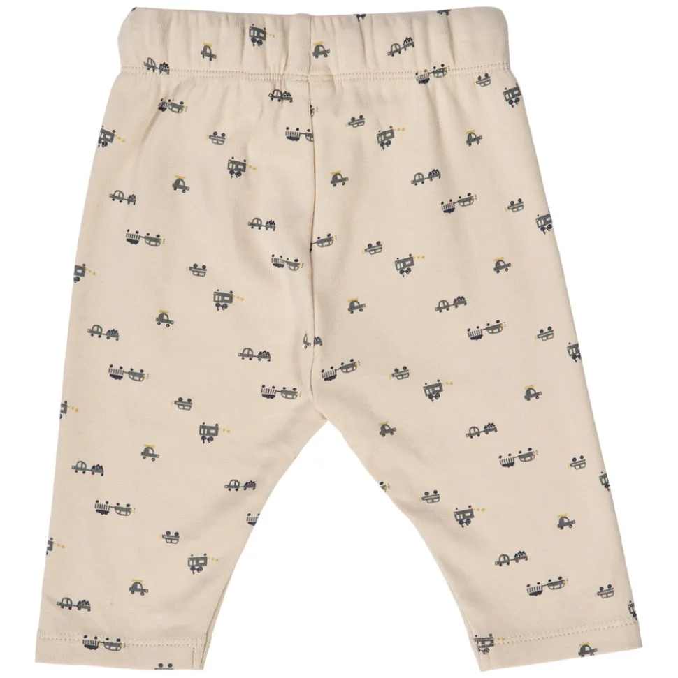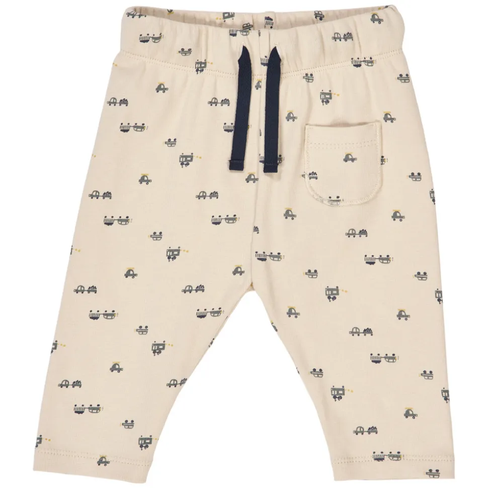 Disse charmerende bukser er dekoreret med et fint, gennemgående print af små biler – perfekt til de små med fart på. Bukserne har en behagelig elastik i taljen og et dekorativt bindebånd, der tilføjer et ekstra sødt touch. Foran finder du en enkelt, praktisk lomme.