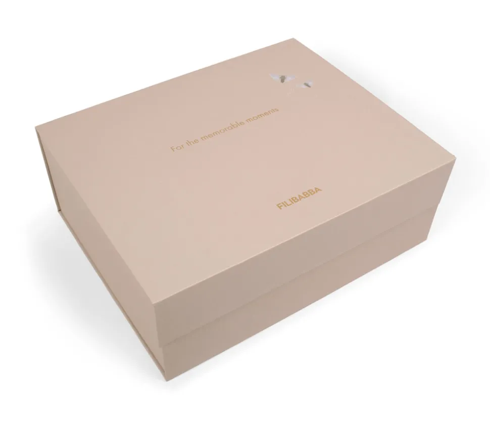 Livet som forælder rummer mange vidunderlige øjeblikke og begivenheder, som du ønsker at kunne huske for evigt. Uanset om du vil gemme en lillebitte sparkedragt, en hue eller den første mælketand, hjælper Filibabbas baby memory boks dig med at organisere dine minder. Denne fine memory boks er lavet af smukt og slidstærkt kvalitetspapir og fyldt med små stofposer og konvolutter og er på denne måde en æstetisk opbevaringsboks til de vigtigste øjeblikke. Det stilrene minimalistiske design med få ud fyldbare felter gør æsken nem at bruge for travle småbørnsforældre og sikrer, at de dyrebare øjeblikke ikke går i glemmebogen. Alt dette gør denne memory til den perfekte gave til såvel kommende som nybagte forældre. Mål: L: 25 x B: 32 x H: 10 cm.