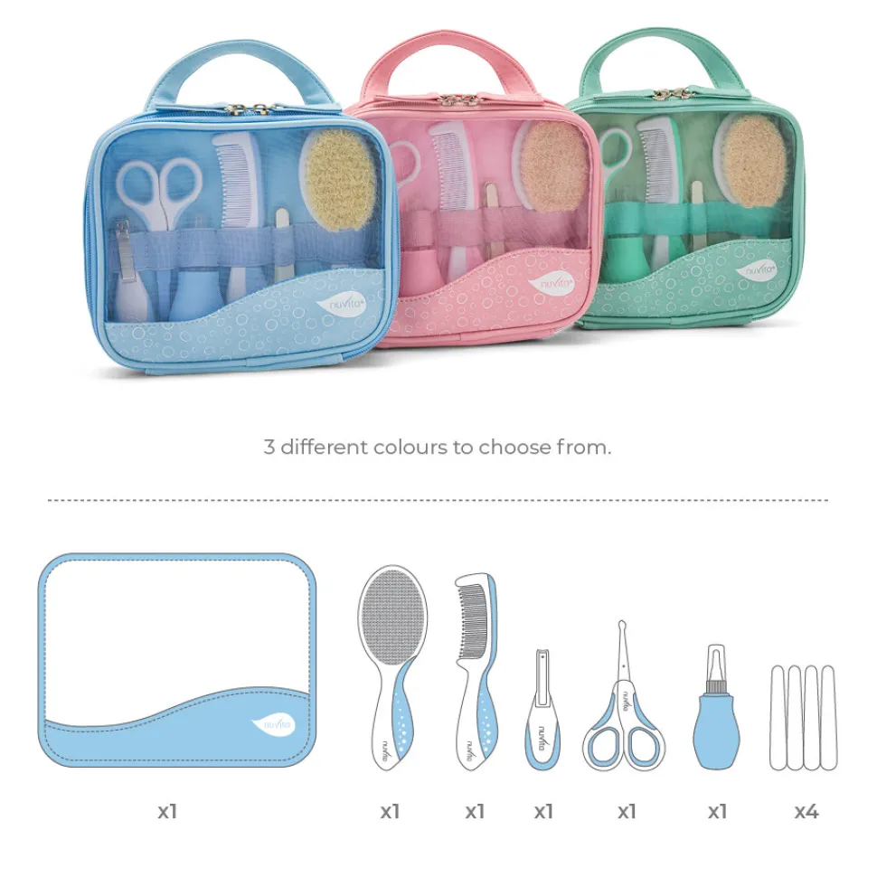Alt hvad du har brug for til den daglige hygiejne og sundhedspleje af din baby i et praktisk etui. Praktisk derhjemme og meget praktisk, når du rejser.