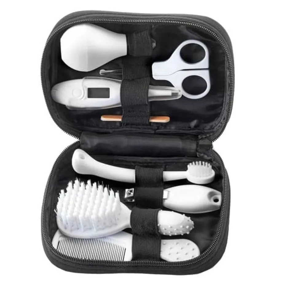 Et praktisk og komplet plejesæt, der hjælper dig med at tage hånd om din baby fra fødslen. Med ni essentielle redskaber samlet i ét kompakt og rejsevenligt etui, er du altid klar til at tage dig af din babys daglige pleje – uanset hvor du er.