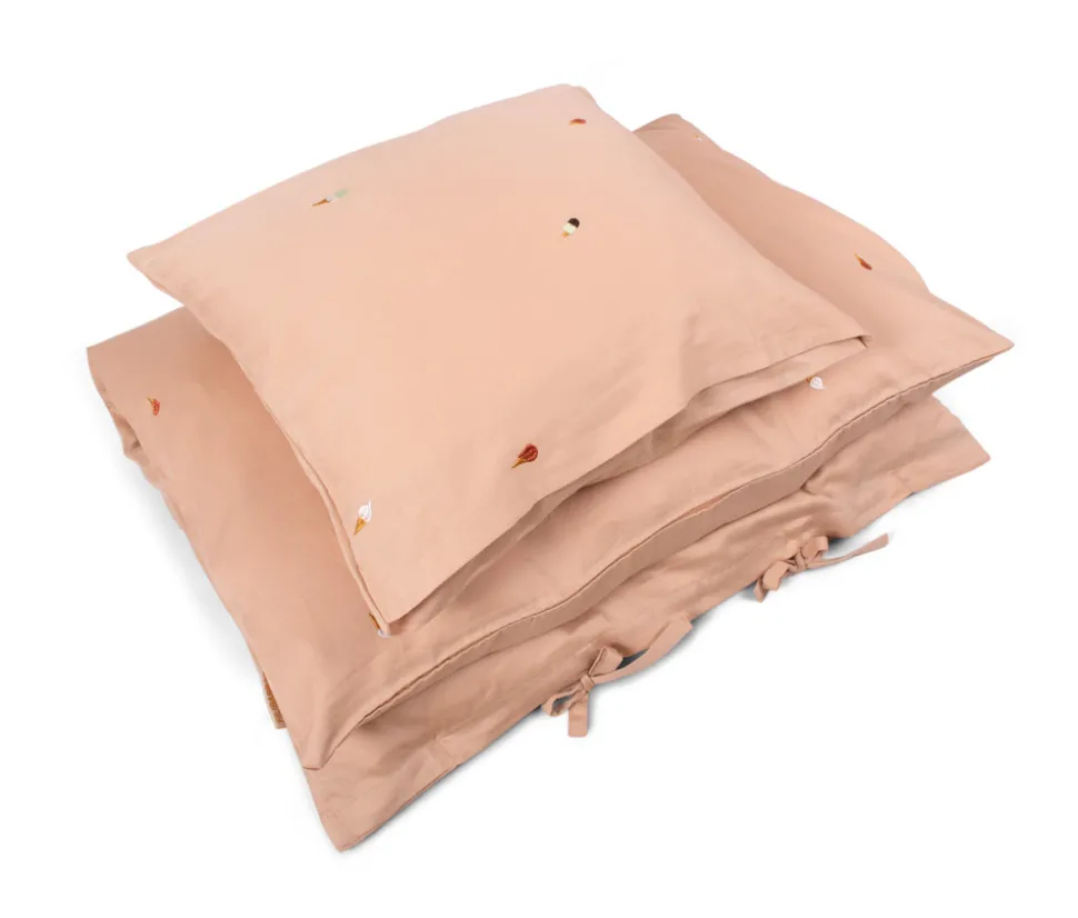 Os forældre bruger meget tid på at hjælpe vores kære små med at falde i søvn, og findes der egentlig en bedre måde at slutte dagen på end at blive puttet ned i små glimt af glæde med et kys? Lad din baby blive omfavnet af det blødeste sengesæt i 100% GOTS-certificeret økologisk bomuld.