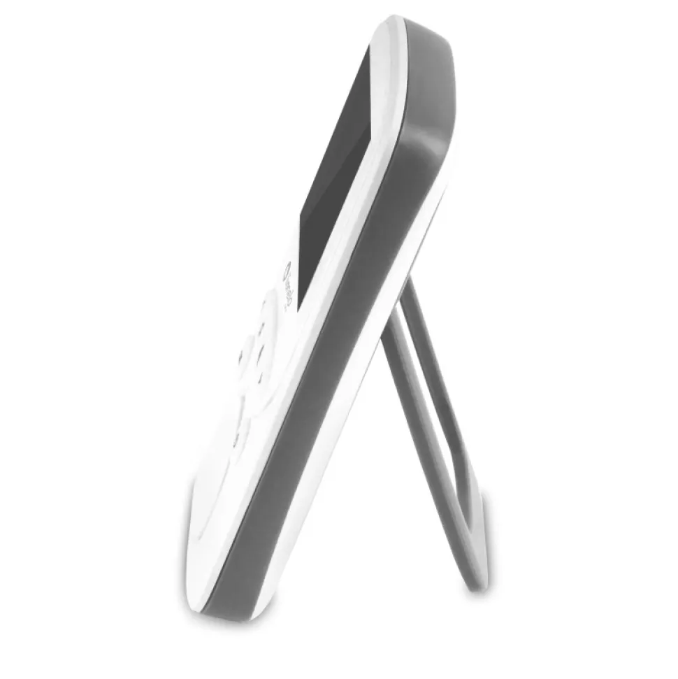 To-vejs kommunikation: Gør det muligt for både forældre og barn at høre hinanden.Termisk sensor: Informerer om den aktuelle rumtemperatur.Justerbare kameraer: To kameraer, der kan placeres optimalt eller monteres på væggen.Farvedisplay: Modtageren har et klart, farverigt display og en stabil støttehåndtag.Nattefunktion: Understøttet af en lysfølsom sensor med en rækkevidde på 5 meter, så du kan overvåge barnet i mørke.Holdbart batteri med en kapacitet på 1000 mAhEnergibesparende VOX-tilstand: Aktiverer enheden kun ved lyd, hvilket forlænger batteriets levetid op til 24 timer.Lang rækkevidde: Op til 300 meter, så du kan overvåge barnets aktivitet på afstand.I tilfælde af at være uden for rækkevidde, ændring af stuetemperatur, barnets opvågning eller lavt batteri sender babyalarmen en meddelelse.Beroligende melodier: 8 melodier, der kan aktiveres eksternt for at berolige barnet.