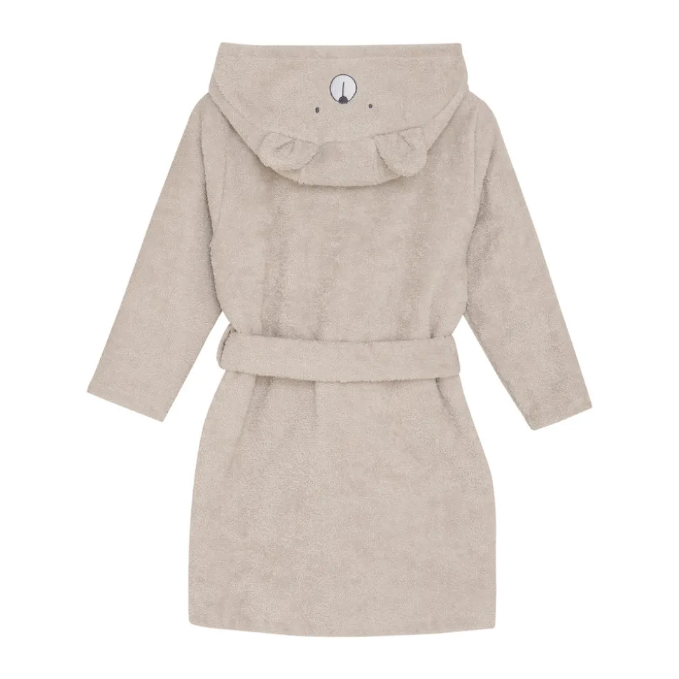 Denne badekåbe er designet specielt til børn og er lavet af blød frotté, der sikrer maksimal komfort og varme. Den er både praktisk og stilfuld med et bindebælte, der giver en justerbar pasform, så den sidder perfekt hver gang. Ideel til brug efter badet eller som en hyggelig morgenkåbe.