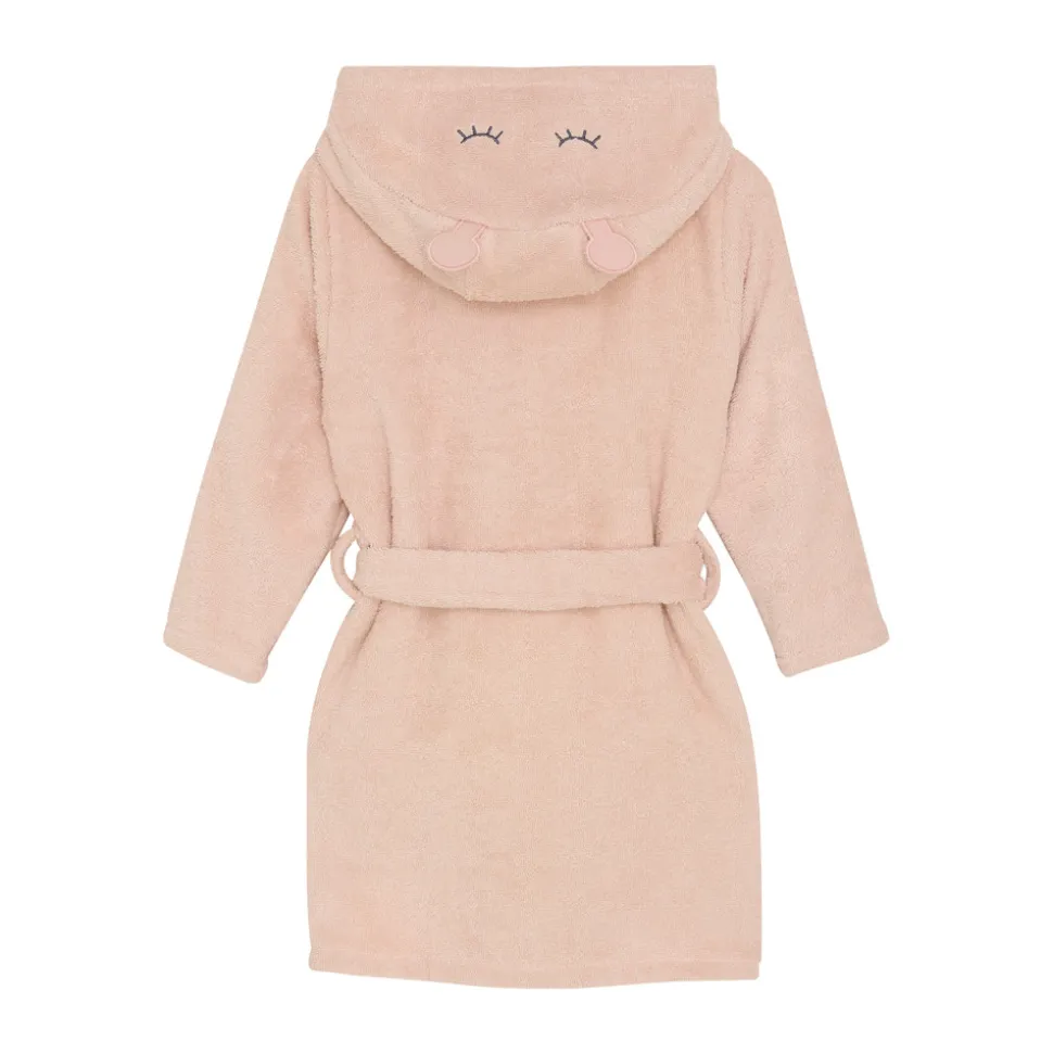 Denne badekåbe er designet specielt til børn og er lavet af blød frotté, der sikrer maksimal komfort og varme. Den er både praktisk og stilfuld med et bindebælte, der giver en justerbar pasform, så den sidder perfekt hver gang. Ideel til brug efter badet eller som en hyggelig morgenkåbe.