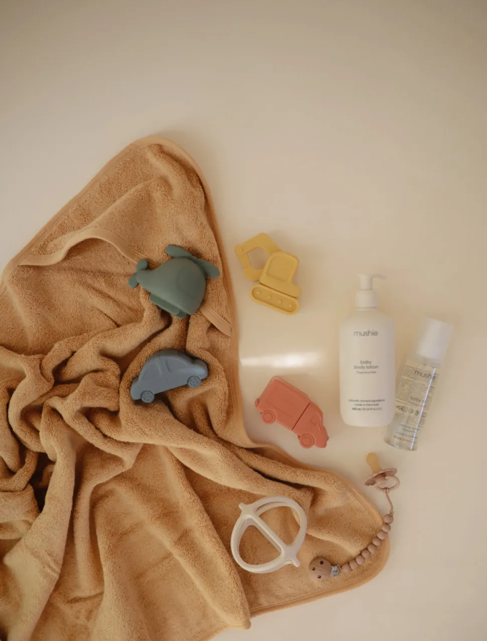 Mushie er en internationalt anerkendt amerikansk producent, og deres produktemballage viser det amerikanske produktnavn.