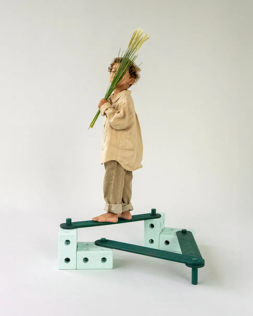 Byg. Balancér. Med dette sæt af bomme og klodser kan børn designe deres egne balancebaner og udfordre deres koordination og motorik med mindst 10 forskellige baner på forskellige niveauer — og flere at udforske! Balancebommene er lavet af birketræ og bejdset med naturlige linolier, hvilket giver et holdbart design, der passer ind i ethvert hjem. Med utallige måder at bygge på er dette sæt perfekt til at fremme fantasifuld leg og aktiv læring, og når balancebanen ikke er i brug, kan den bygges om til smarte møbler, som en hylde, en bænk eller endda et lille bord — et sjovt og funktionelt legetøj til børn fra 3 år og op!
