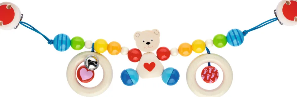 Barnevognskæderne er små kunstværker og har meget at opdage. De er lavet af træ af høj kvalitet.