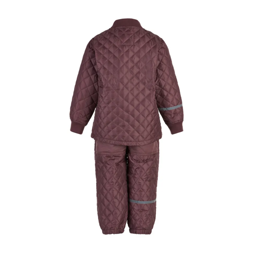 Til dage, hvor det er for varmt til vintertøj og for koldt i en tynd sommerjakke, er termotøj fra CeLaVi perfekt. Kan bruges alene eller indenunder regntøjet for at give lidt ekstra varme. Termotøjet er ikke vandtæt, men på knæ og bagdelen er der tilføjet et lag Oxford nylon, som er imprægneret med en gennemsigtig PU-coating på bagsiden, der gør disse udsatte områder mere slidstærke og vandafvisende.