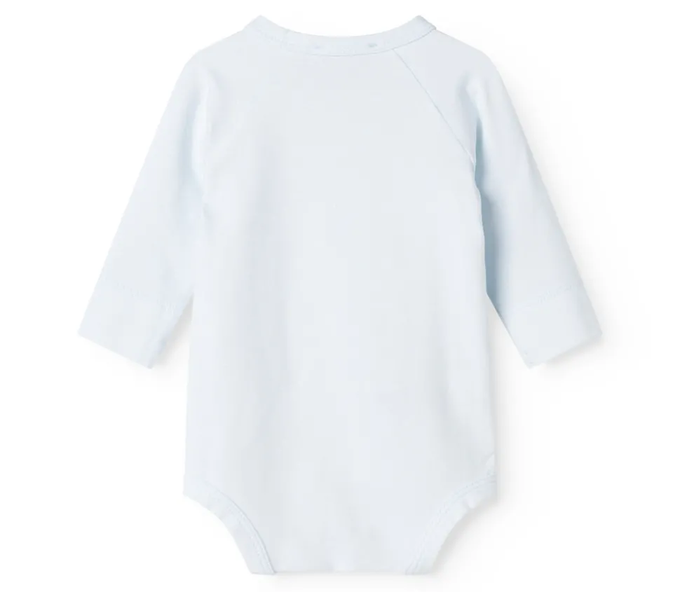 Denne langærmede bodystocking med praktisk slå-om-lukning er perfekt til de mindste. Den er fremstillet i blød jersey med elastan, som gør den strækbar og behagelig for babyen at have på. Kvaliteten sikrer, at den holder både form og farve – selv efter mange vaske.