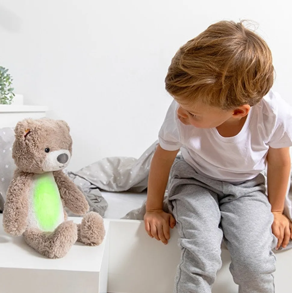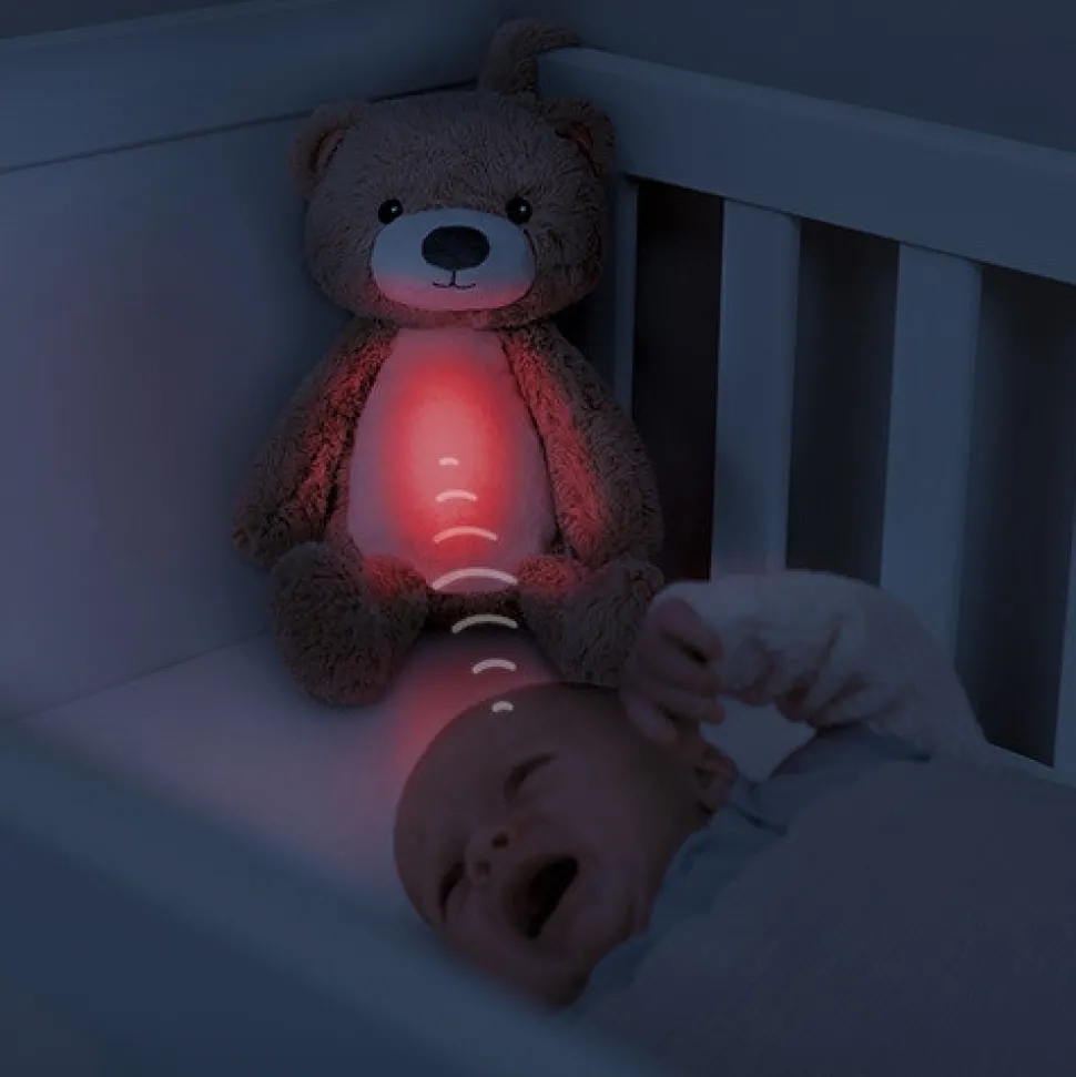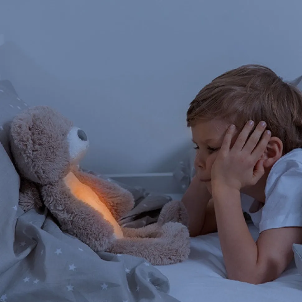Sød bamse, der er søvntræner, natlampe og spilledåse i ét. Brody lærer dit barn at forstå forskellen mellem nat og dag, lyser op i mørket og afspiller lyde. Den søde bamse Brody hjælper dig og dit barn med at sove godt hele natten. Når det er tid til at sove, kan du bruge Brody til at spille vuggeviser, mens han trygt skinner med sit beroligende lys. I de tidlige morgentimer fungerer Brody som søvncoach, og hjælper dit barn ved at skifte farve for at vise, hvornår det er tid til at stå op (eller hvis du skal vente lidt længere).