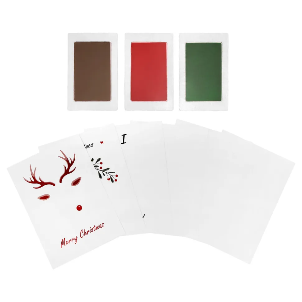 Indhold: 3 x blækpuder, 3 x hvidt papir, 3 x papir med pre-print