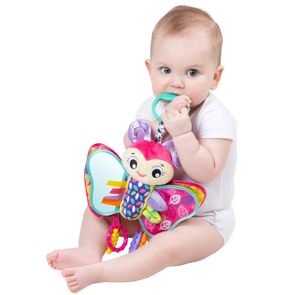 Her er der masser for barnet at udforske. Til at begynde med kan barnet nyde de mange farver på Playgro’s sommerfugl. Senere vil der være endnu mere at opdage, med forskellige overflader, bideringe, flapper og raslelyde. Denne sommerfugl er designet til at stimulere barnets sanser og nysgerrighed, og den vil hurtigt blive en favorit i legetøjssamlingen.