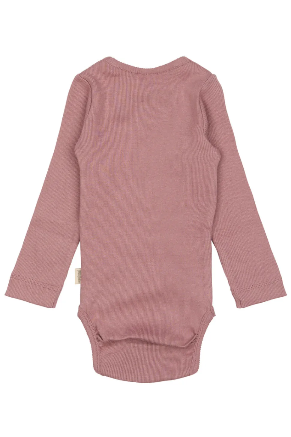 Petit Piao ensfarvet body er i økologisk bomuld. I halsåbningens venstre side er der en trykknap som gør det nemt at få den over barnets hoved. I bunden er der tre trykknapper, som gør det let at stifte barnet. Body’en er strækbare og fremstillede af en lækker blanding af bomuld og modal. Ribkvaliteten giver et meget fleksibelt materiale, så barnet har let ved at bevæge sig og lege.
