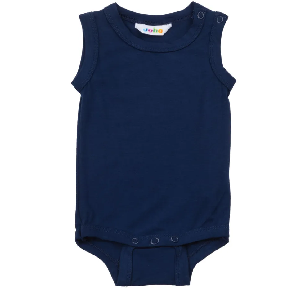 Body uden ærmer. Trykknapper på den ene skulder samt mellem benene for nemmere påklædning. En elastisk økologisk bambuskvalitet som er dejlig blød og lækker. Perfekt at bruge inderst.