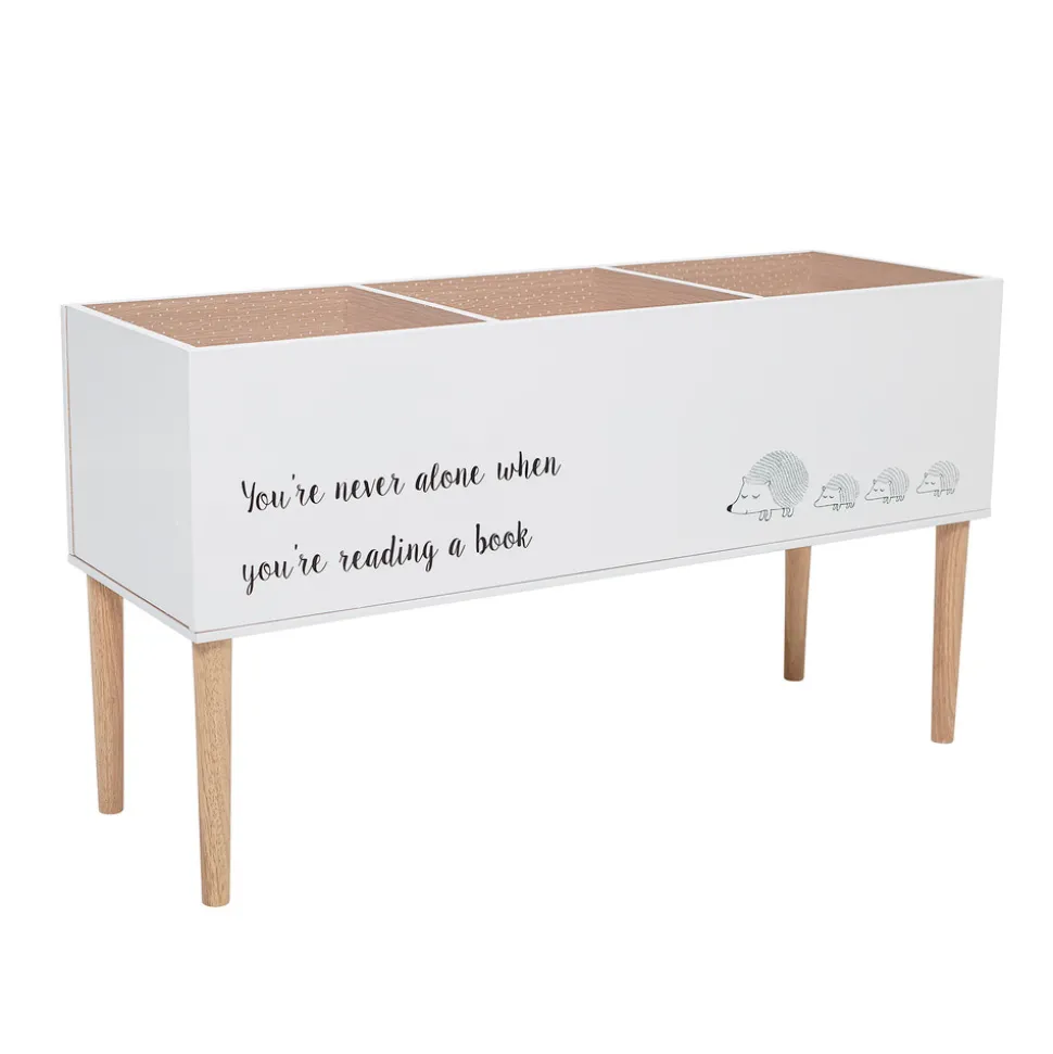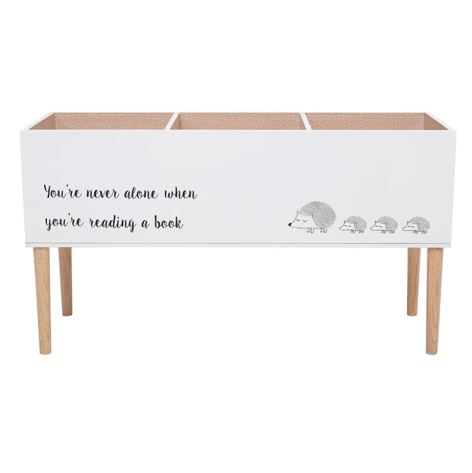 Bogkasse til værelset med sød tekst og små fine pindsvin. Praktisk og rummelig.