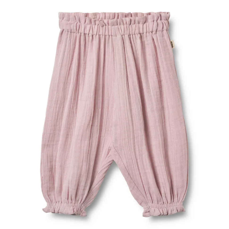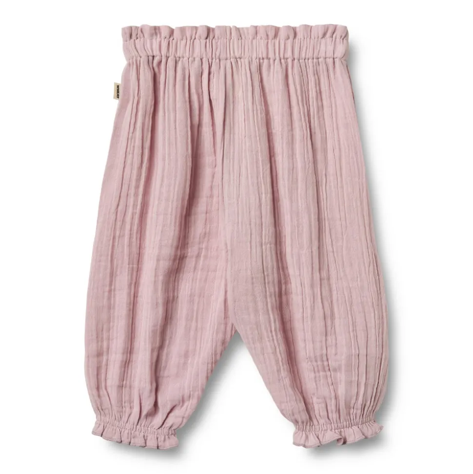 Bløde bukser i økologisk bomuldsgas til babyer.