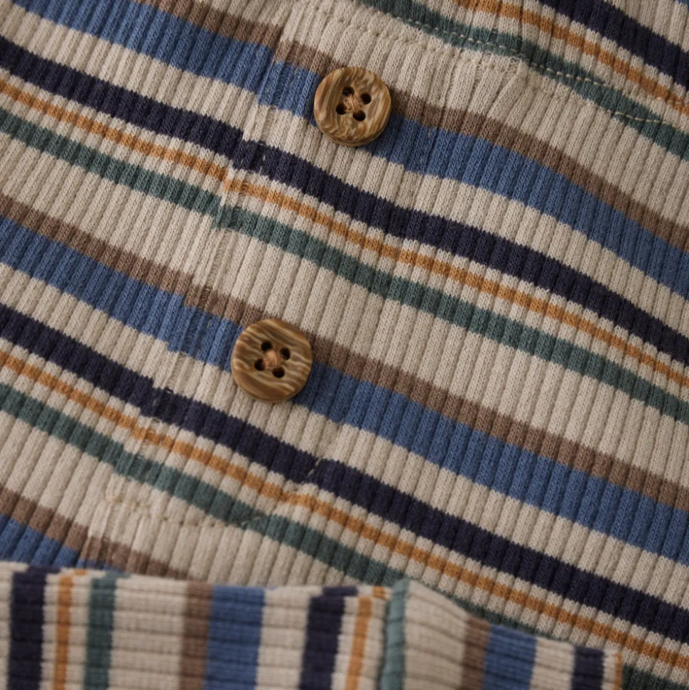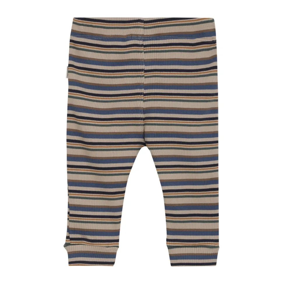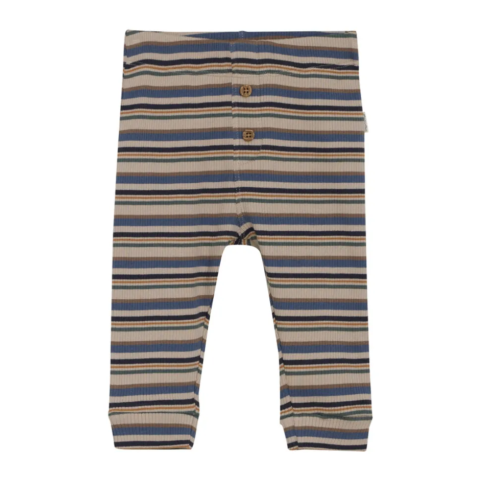 Disse ribbukser fra Minymo er perfekte til hverdagsbrug og leg. Bukserne har et flot stribet mønster i afdæmpede farver, som passer til det meste i garderoben. Den elastiske talje sikrer, at bukserne sidder godt og behageligt på barnet, mens ribkvaliteten giver ekstra fleksibilitet og bevægelsesfrihed. Foran er der to små dekorative knapper, som giver et sødt og klassisk udtryk. Bukserne er nemme at tage på og af, og de bløde materialer gør dem behagelige mod huden – ideelle til både små og større børn.