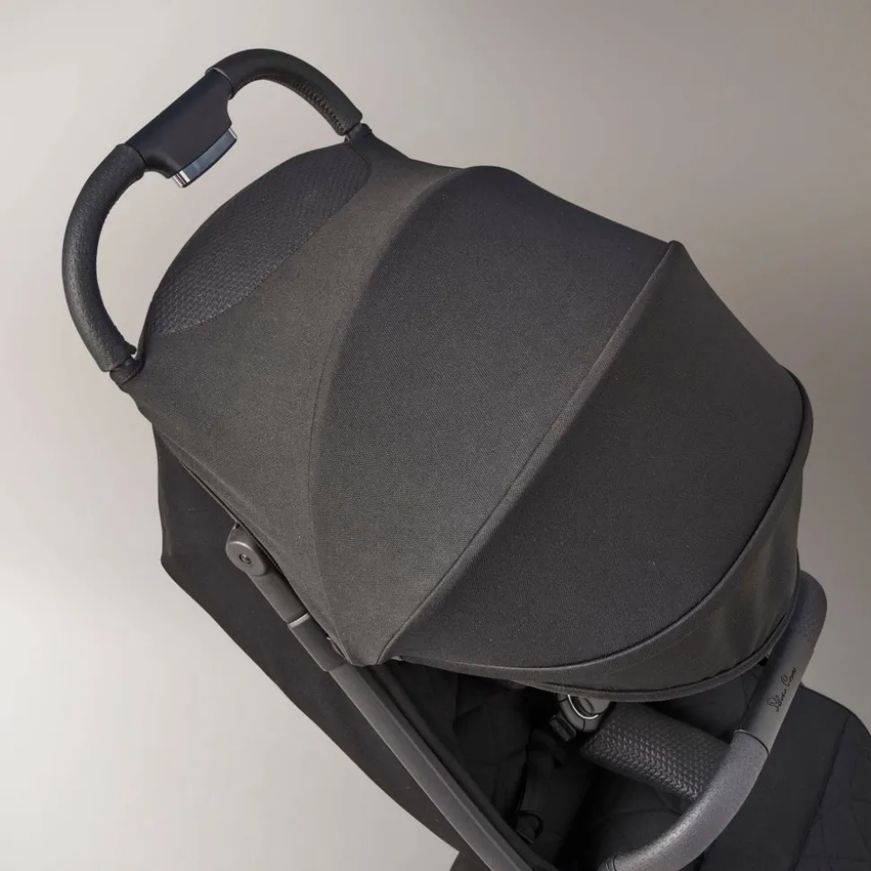 Betrækket er nemt at vaske og lavet af genanvendte plastikflasker. Kombineret med de fine veganske læderdetaljer og det klassiske Silver Cross logo, fremhæver det smukke betræk barnevognens stilrene æstetik.