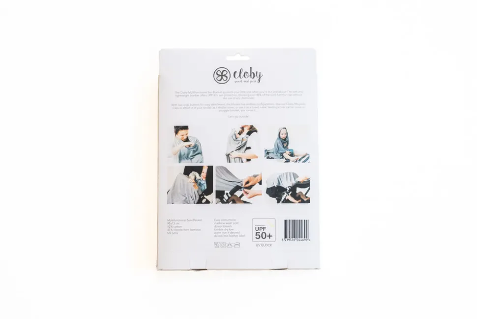 Cloby Multifunktionelt UV tæppe beskytter din baby når i går ud. Det bløde og lette tæppe tilbyder UPF 50+ solbeskyttelse, der blokere over 98% af solens skadelige stråler uden brug af kemikalier. Med to trykknapper har tæppet uendelige muligheder. Sæt det på din klapvogn eller barnevogn, eller brug det som håndklæde, som cover over bæresele eller blot til hygge. Mange muligheder i ét tæppe.