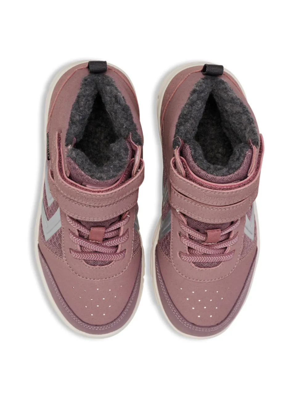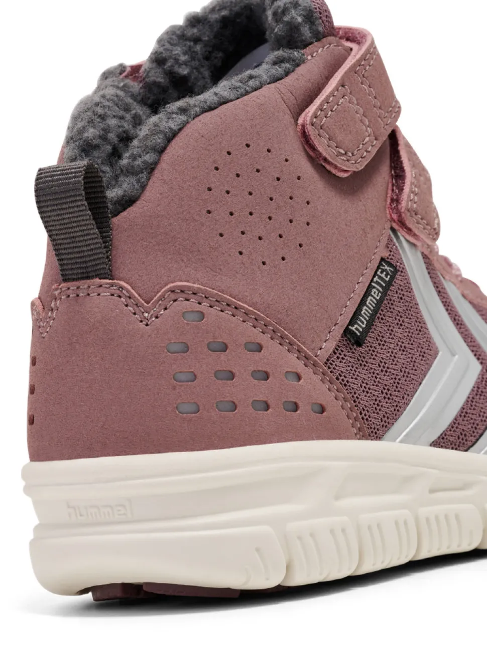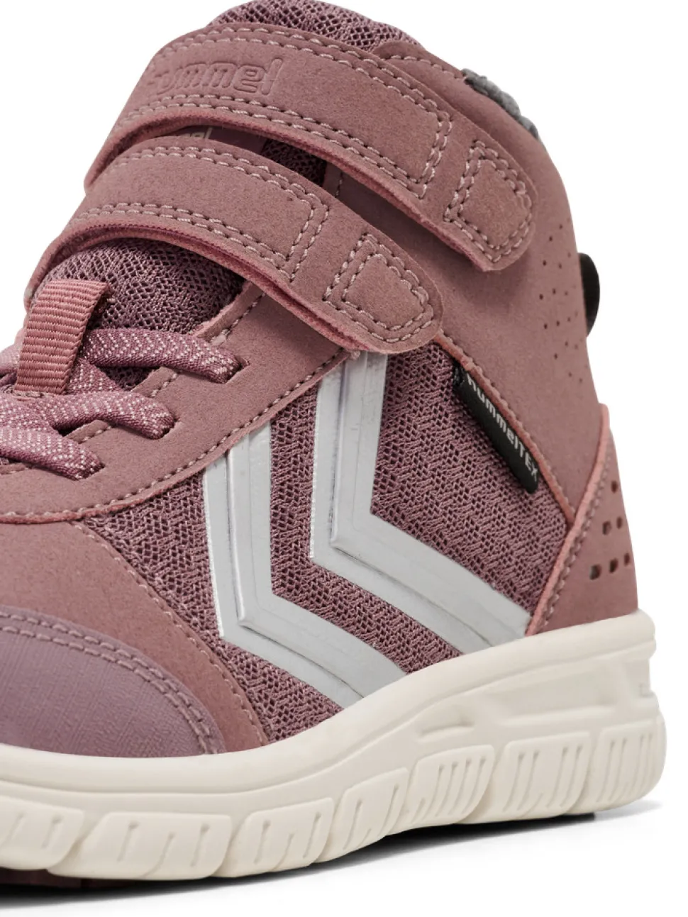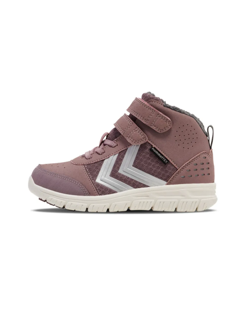 CROSSLITE WINTER MID TEX JR er lun og hyggelig og designet med familiens mindste i tankerne med en overdel i mesh, der har overlays i kunstruskind, samt hummelTEX membran for at bevare en fast form og struktur, mens skoen stadig er åndbar og fleksibel. Denne hummel® sneaker har også en superlet EVA mellemsål samt elastiksnørebånd og klipbare velcrolukninger, så pasformen bliver perfekt. Refleksdetaljer sikrer øget synlighed i svag belysning. Denne sneaker har en normal til bred bredde. Når du vælger skostørrelse til dit barn, anbefaler vi 1 til 1,5 cm i voksetillæg.