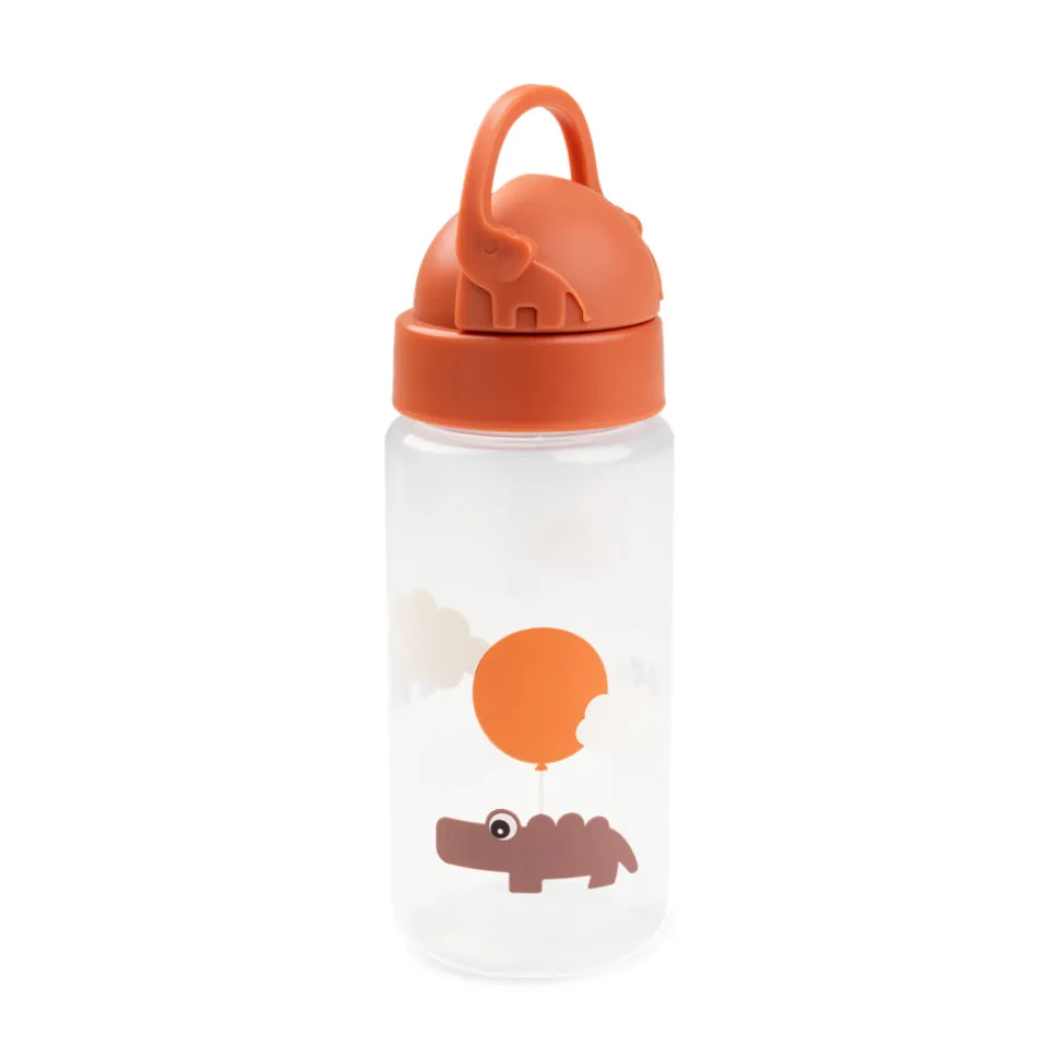 Den søde Happy clouds drikkedunk med sugerør passer perfekt til ungernes rygsæk. Drikkeflasken har et smart sugerør, der kan gemmes i låget og forhindrer at væske spildes. Håndtaget hjælper de små hænder med at finde sugerøret frem igen. Den spildfrie børnedrikkeflaske er uundværlig på farten og gør det sjovt for barnet at drikke masser af vand. Et ekstra sugerør og mundstykke er inkluderet. Croco, Birdee og Ozzo pynter på drikkedunken i grønne og blå nuancer.