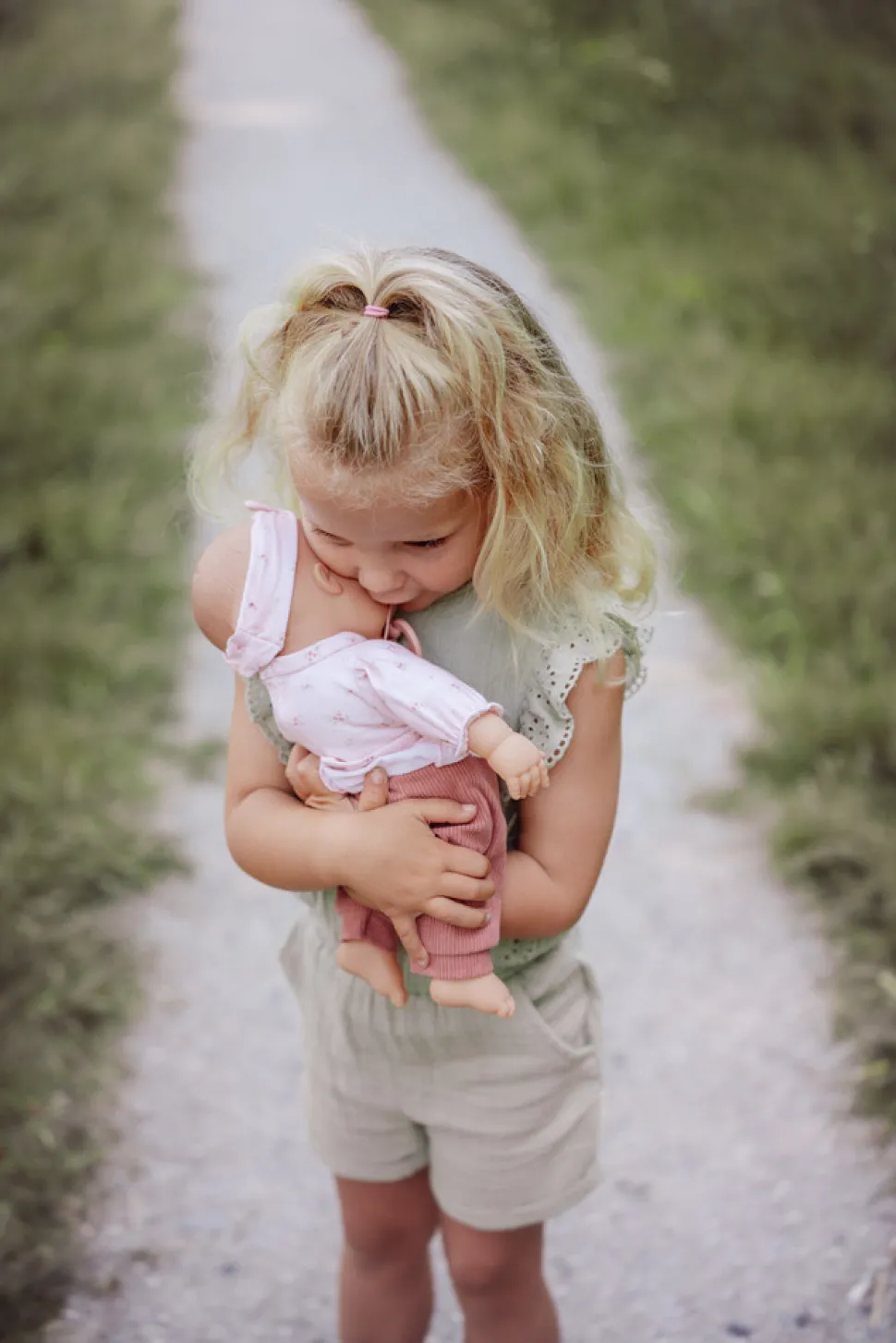 Mød baby Lily. Giv hende et kram og pas på hende. Lily er en yndig og livagtig dukke med en blød og nuttet krop, som elsker at blive elsket. Du kan skifte hendes tøj, hjælpe hende med at falde i søvn og berolige hende med sutten. Når hun er sulten, kan du tilbyde hende mælk af sutteflasken. Børn elsker at efterligne alt, hvad deres forældre gør, og denne babydukke vil inspirere dit barn til at deltage i rollelege om pleje og omsorg. Lily har hårbånd, langærmet kjole og lyserøde bukser med ribkant. At skifte hendes tøj fremmer finmotorikken og sutten og sutteflasken tilføjer et element af interaktiv leg.