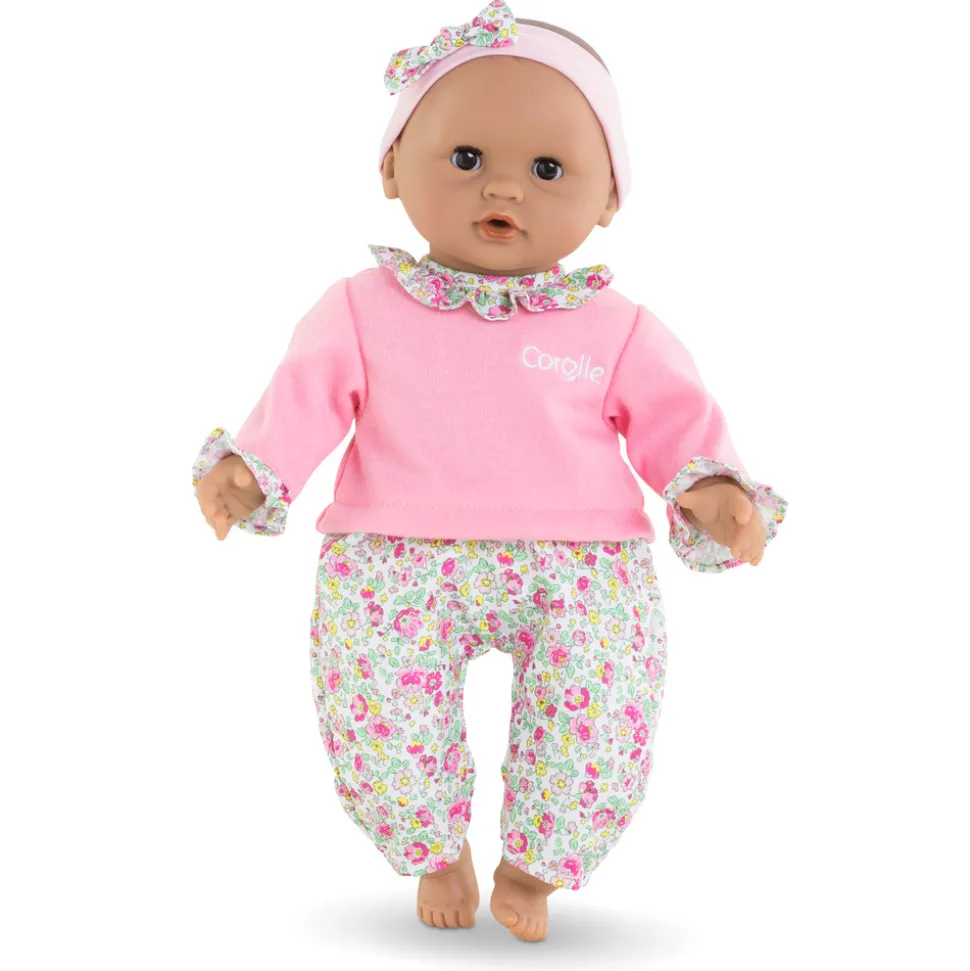 Ansigtet, armene og benene er lavet af blød vinyl, som har en let duft af vanilje. Denne behagelige duft gør legen endnu mere fornøjelig og autentisk. Dukken er iført blomstrede bukser, en top med flæsekant og et pandebånd med sløjfe, hvilket giver hende et sødt og stilfuldt udseende.