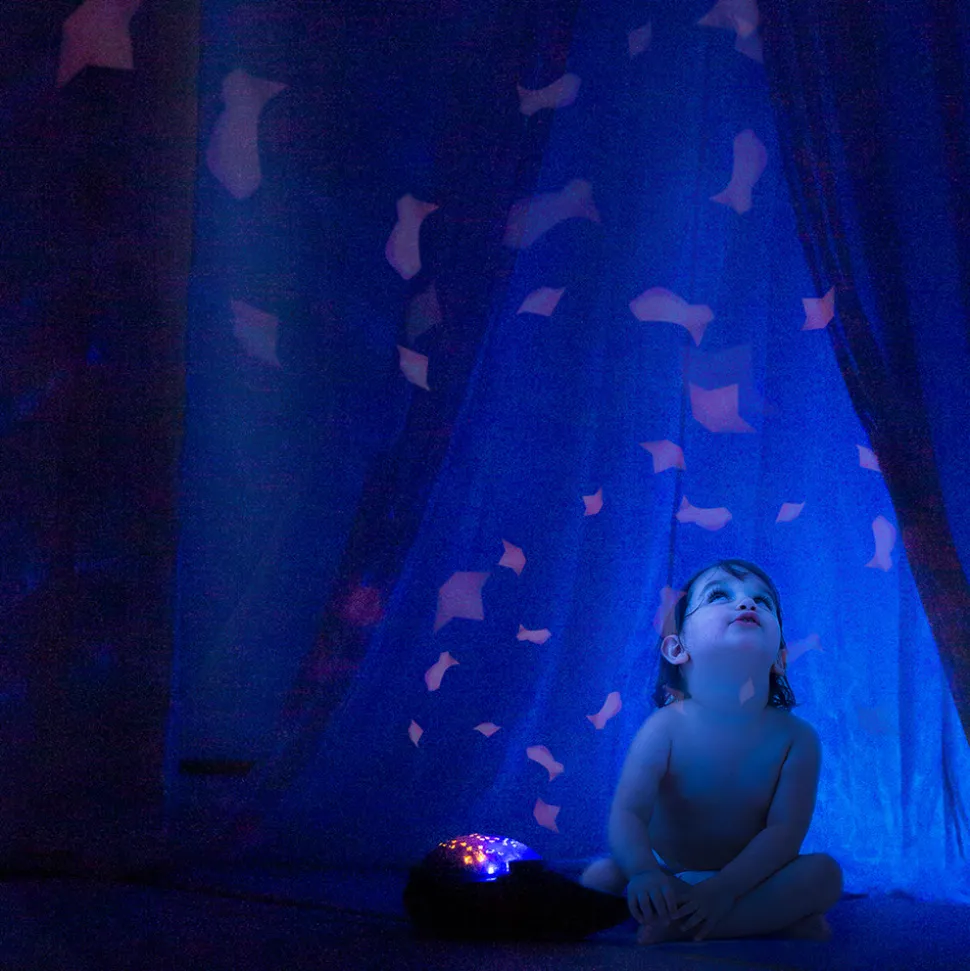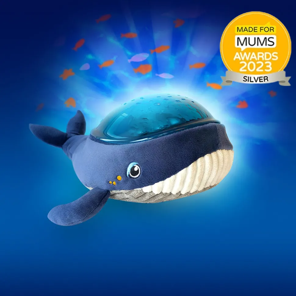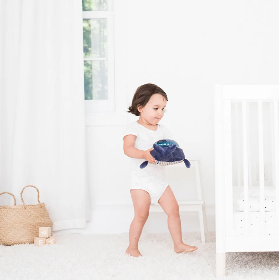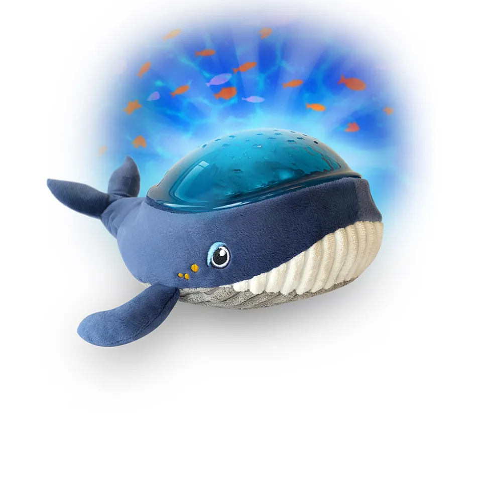 Med Pabobo Dynamic Undervands Projector Hval kan barnet falde i søvn til fisk og beroligende lyde fra et roligt hav, såkaldt “hvid støj”. En innovativ natlampe, med den nyeste teknologi og lyd, lys og billede. Den seneste forskning viser, at børn falder lettere i søvn til en svag baggrundslyd, såkaldt hvid støj. Den har Pabobo Dynamic Undervands Projector. Natlampen har tre forskellige programmer, der hjælper barnet til at falde trygt i søvn om aftenen. Hvert program har sin egen kombination af lyde, rytmer og intensitet. Som forældre vælger I det program, der passer jeres barn bedst til at sove, så husker lampen det valgte program. Vælg mellem rolige vuggeviser og lyden af et roligt hav. At have den samme sengetidsrutine nat efter nat er et velkendt tip til at få små børn til at sove. Med Pabobo Dynamic Undervands Projector Hval skal du blot trykke på knappen, når du lægger dig ned, for at starte natten med det valgte program, der bliver en del af barnets natterutine. Programmerne er af forskellig længde, 15 minutters vuggevise, hjerteslag eller bølger eller 25 minutters projektor. Både med en kombination af svagt lys, beroligende lyde og et smukt undervandsmiljø, der langsomt bevæger sig dynamisk fra to forskellige retninger.