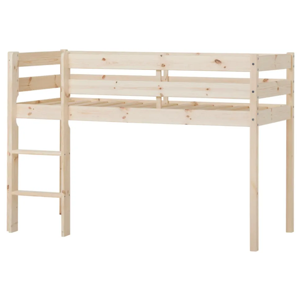 ECO Comfort Halvhøj seng i størrelse 70×160 cm. fra Hoppekids er en lille og praktisk seng. Den passer ind på selv de mindste børneværelser og giver ekstra gulvplads. Man kan bl.a. bruge pladsen til ekstra opbevaring eller som legeområde. Højden på sengen er 72 cm og er god til børn, som gerne vil have en høj seng uden, at den bliver for høj. Under sengen er der rig mulighed for opbevaring eller ekstra gulvplads. Hvis I hænger forhæng foran sengen kan der skabes den hyggeligste hule – pynt den eventuelt med lyskæder, fine billeder, en madras, puder og tæpper. Sengen er svanemærket. Svanemærket er jeres garanti for, at produktet overholder alle EU-standarder inden for børnemøbler og er testet på disse. Samtidig tages der størst mulige hensyn til miljøet både ved indkøb af råvarer, under selve produktionen, i produktets liv og når produktet skal bortskaffes. Overfladen er behandlet med miljøvenlig, vandbaseret lak, fri for unødige kemikalier og skadelige stoffer. Den lille størrelse 70×160 cm gør sengen perfekt til det lille værelse eller til børn, som ikke helt er klar til en voksenseng endnu. Der er stadig rigeligt med plads til at vokse, uden at sengen føles stor og utryg.