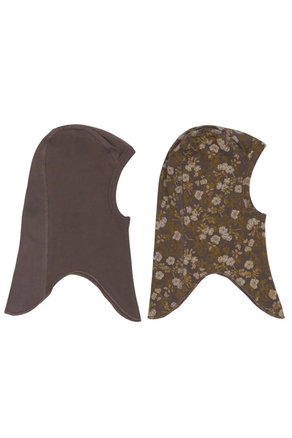 2 pak mikk-line elefanthuer af 100% økologisk bomuld. Huerne er fremstillet i et dobbelt lag stof udelukkende af naturlige fibre, og huerne er bløde, lette og åndbare. Pakken består af en enkelt ensfarvet elefanthue og en elefanthue i et fint printmønster, der fås i forskellige varianter. Elefanthuen dækker det meste af barnets hoved, hals og ansigt, så den beskytter barnet mod kulde og vind, når det leger og udforsker naturen under den åbne himmel.