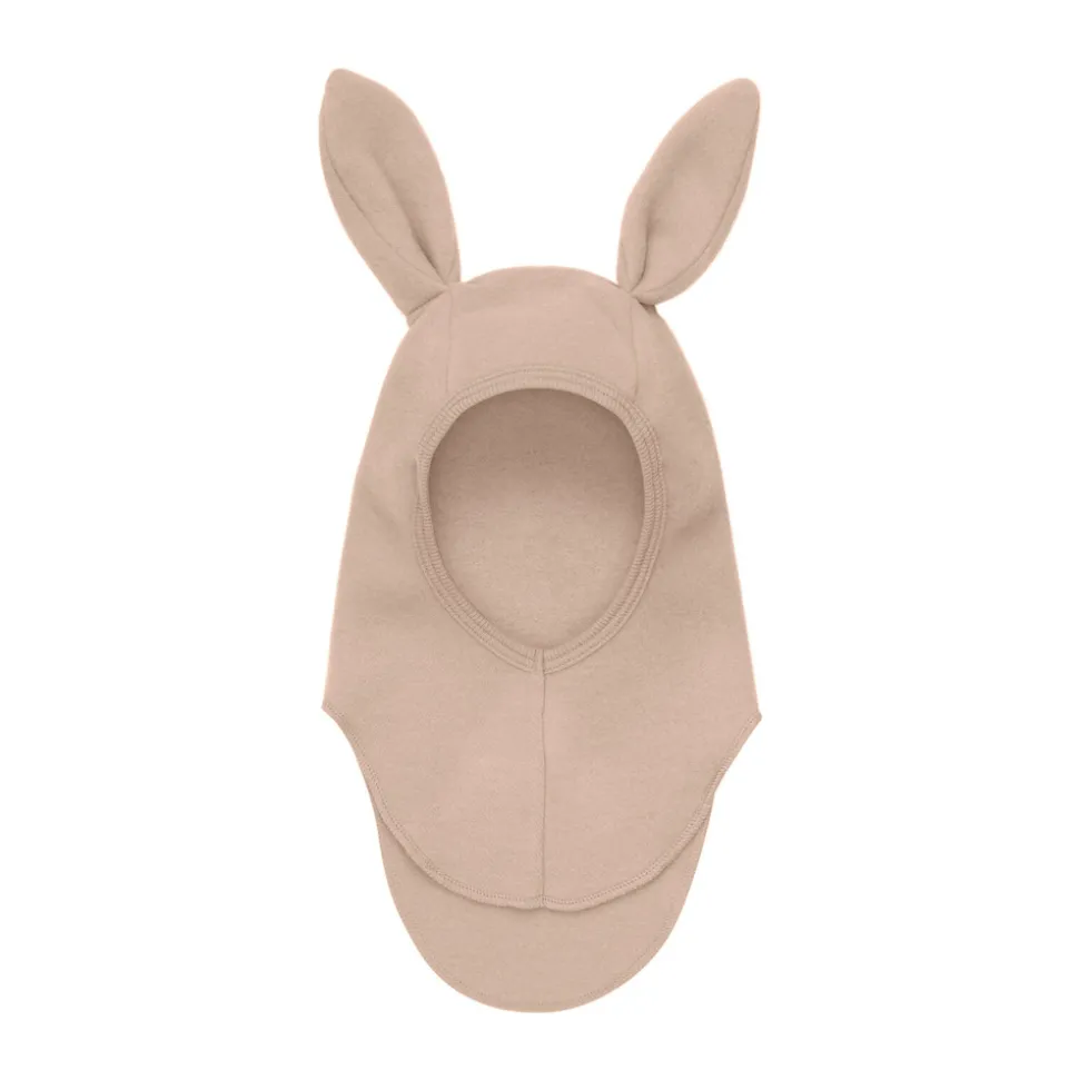 Huttelihut laver utroligt fine og bløde elefanthuer til babyer og større børn. Denne smarte elefanthue er fremstillet i blød uldfleece og har lange kaninører på toppen, der tilføjer et sødt og legende touch. Elefanthuen har en rund hovedform og en smal elastisk ribkant omkring ansigtet, hvilket sikrer en god pasform og komfort. Derudover har den et praktisk split-design med ekstra længde bagpå, så barnet holdes varmt.