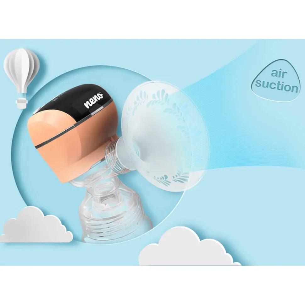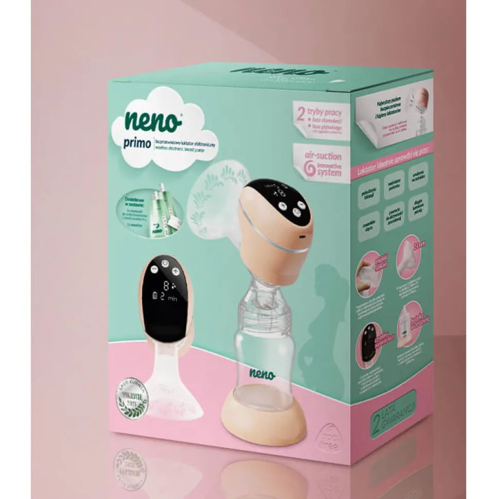 Neno Primo Trådløs elektrisk brystpumpe er lille og handy – den passer nemt i din håndtaske. Dette er en single elektronisk brystpumpe der fungerer i to tilstande: stimulering og aktivt indtag. Hver af disse tilstande fungerer på henholdsvis 5 og 9 niveauer. Brystpumpen er let og handy – den passer nemt i en kvindes håndtaske. I betragtning af mødre, der ikke er glade for berøringskontrolpaneler, har producenten skabt et klassisk trykknap-operativsystem. Neno brysttragte er lavet af blød japansk silikone af høj kvalitet for den ultimative komfortoplevelse under brystpumpning. Derudover fås tragtene i forskellige størrelser for at hjælpe dig med at tilpasse produktet til din brystvorte så meget som muligt. Neno Primo kan steriliseres med traditionelle metoder med kogende vand, eller du kan bruge professionelle produkter beregnet til desinfektion (f.eks. Neno Vita). Det tager kun 10 minutter at sterilisere brystpumpens komponenter med vores dedikerede produkt! Komponenterne i Neno brystpumper (såsom membran og ventil) forhindrer effektivt mælk i at komme ind i maskinens motor. Membranen skaber den fysiske barriere mellem pumpen og flasken, mens ventilen forhindrer mælken i at flyde baglæns. På denne måde kommer der ikke mælk ind på uønskede steder, og du kan nemt holde din brystpumpe hygiejnisk. Neno Primo er ekstremt enkel og intuitiv at bruge. Denne model bruger traditionelle knapper. Så du behøver ikke bekymre dig om blot at få adgang til displayet, og det valgte program eller enheds sugestyrke vil ændre sig. Neno Primo har så mange som 5 stimulationsniveauer og 9 niveauer i den dybe brystpumpetilstand. Derudover husker brystpumpen de seneste indstillinger og bruger næste gang de samme tilstande. Neno brysttragt er kendetegnet ved den mest avancerede AIR SUCTION teknologi. Det er en perfekt efterligning af barnets naturlige sutterefleks og en garanti for brystvortens komfort. LUFTFORSYNING betyder også mere effektiv pumpning og beskyttelse mod sammentrækning af mælkekanalerne. Neno brystskjold tilpasser sig perfekt til den følsomme hud på det kvindelige bryst.