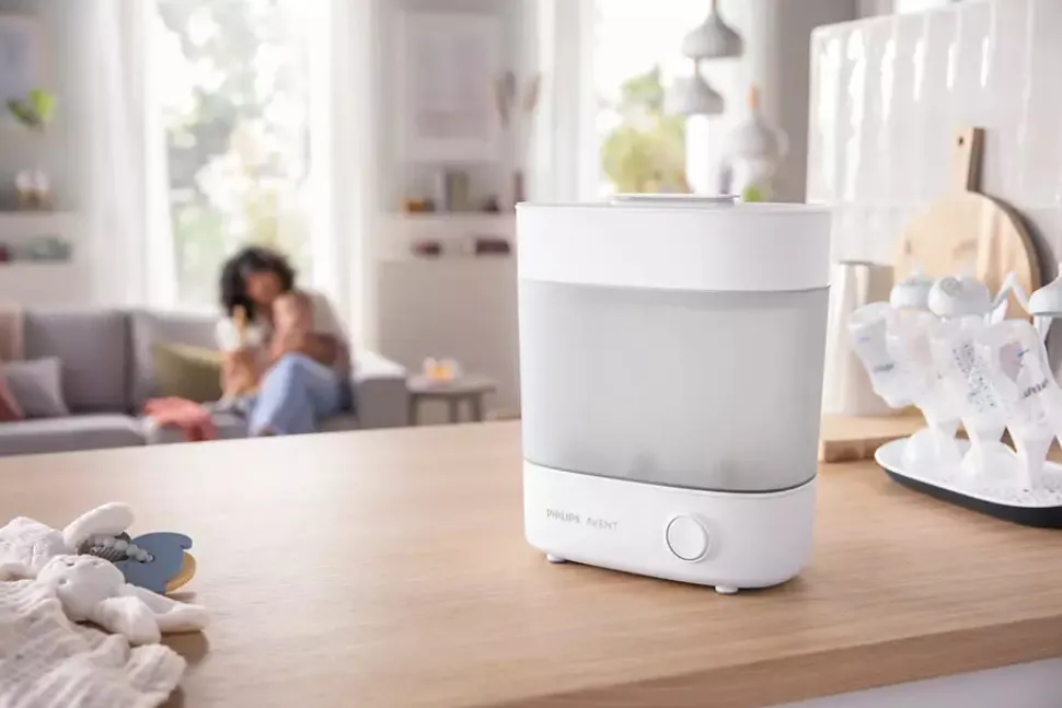 Steriliser op til seks sutteflasker med tilbehør på bare 10 minutter. Den slanke, men rummelige Flaske sterilisator Advanced er hurtig og effektiv og dræber 99,9 % af alle bakterier, så du kan have ro i sindet, hver gang du giver baby mad.