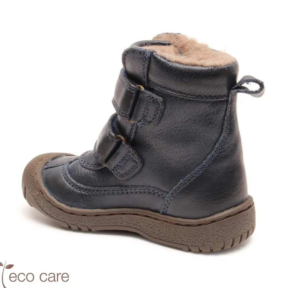 Støvle foret med 100% naturlig uld, som holder fødderne varme i årets koldeste måneder. Produceret i blødt, åndbart og naturligt læder fri for skadelig kemi. Foret med blødt og naturligt uldfoer, som er temperaturregulerende og holder fødderne varme og tørre. Den justerbare Velcro sikrer en naturlig pasform og en let lukning for selv de mindste børn. De er vandtætte og åndbare, så fødderne holdes tørre hele sæsonen. TEX membranen er PTFE- og PFC-fri og 100% genanvendelig.- Naturligt og åndbart uldfoer- Fri for skadelig kemi- Blød gummisål- Dansk design- Vandtæt TEX membran fri for PTFE og PFCFit: Normal Anbefalet voksetillæg: 1-1,5 cm.