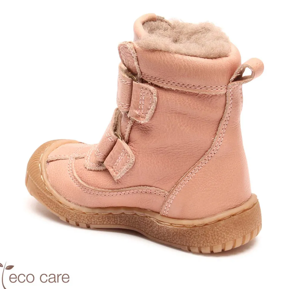 Støvle foret med 100% naturlig uld, som holder fødderne varme i årets koldeste måneder. Produceret i blødt, åndbart og naturligt læder fri for skadelig kemi. Foret med blødt og naturligt uldfoer, som er temperaturregulerende og holder fødderne varme og tørre. Den justerbare Velcro sikrer en naturlig pasform og en let lukning for selv de mindste børn. De er vandtætte og åndbare, så fødderne holdes tørre hele sæsonen. TEX membranen er PTFE- og PFC-fri og 100% genanvendelig.- Naturligt og åndbart uldfoer- Fri for skadelig kemi- Blød gummisål- Dansk design- Vandtæt TEX membran fri for PTFE og PFCFit: Normal Anbefalet voksetillæg: 1-1,5 cm.