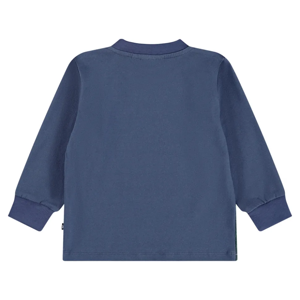 Langærmet bluse i blød, økologisk bomuldsjersey. Designet med ribkanter ved ærmerne og praktiske trykknapper på venstre skulder for nem påklædning.