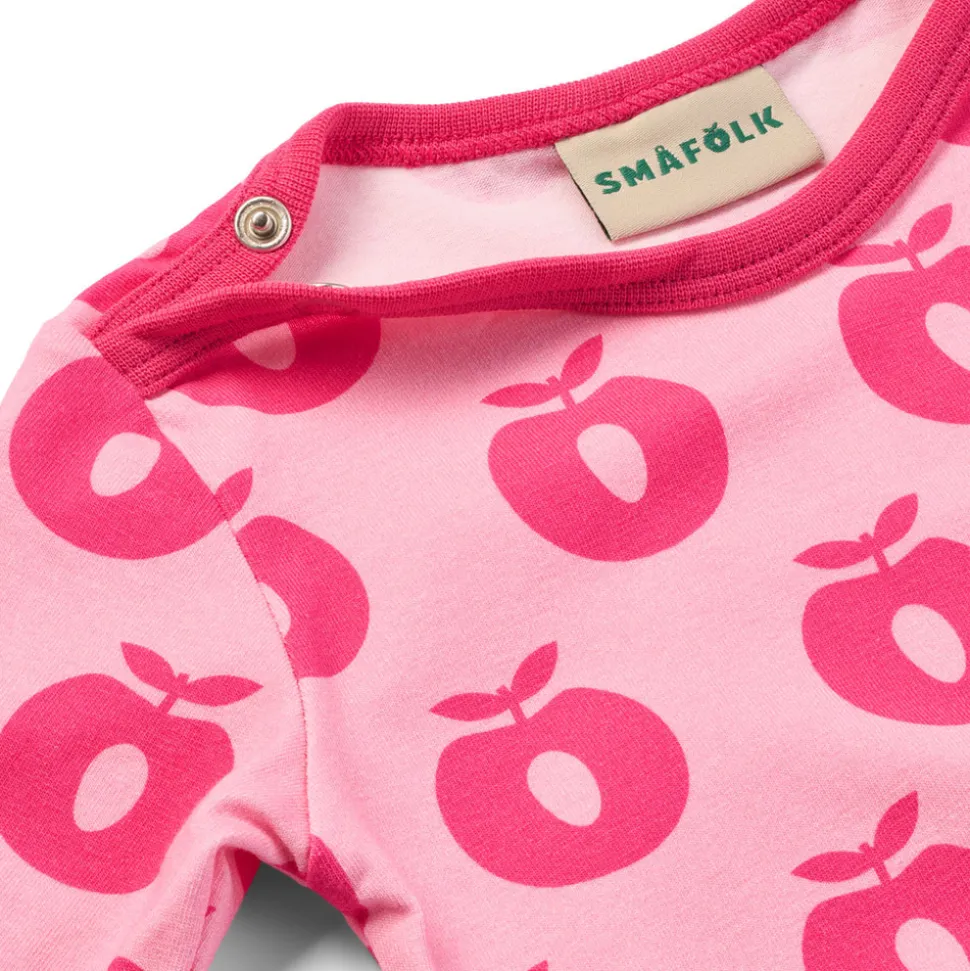 Det ikoniske æbleprint afspejler Småfolks legende oprindelse og tilføjer et strejf af charme til ethvert outfit. Småfolks print er tegnet med fokus på glade farver, detaljer og historier. Vores bodyer er en god måde at tilføje personlighed til dit barns garderobe, samtidig med at dit barn kan føle sig komfortabel hele dagen.