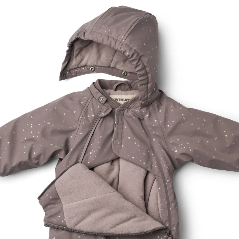 Uundværlig printet flyverdragt i vandtæt materiale til din baby. Wheat’s PU dragter er en perfekt blanding mellem den velkendte regndragt og en flyverdragt. Denne dragt har en tykkere vinter polstring, som gør den varm på selv de koldeste og vådeste vinterdage. Vinterdragten er lavet i åndbart polyurethan (PU) materiale og er derfor unik, da den kan holde dit barn både tørt og varmt på én og samme tid.