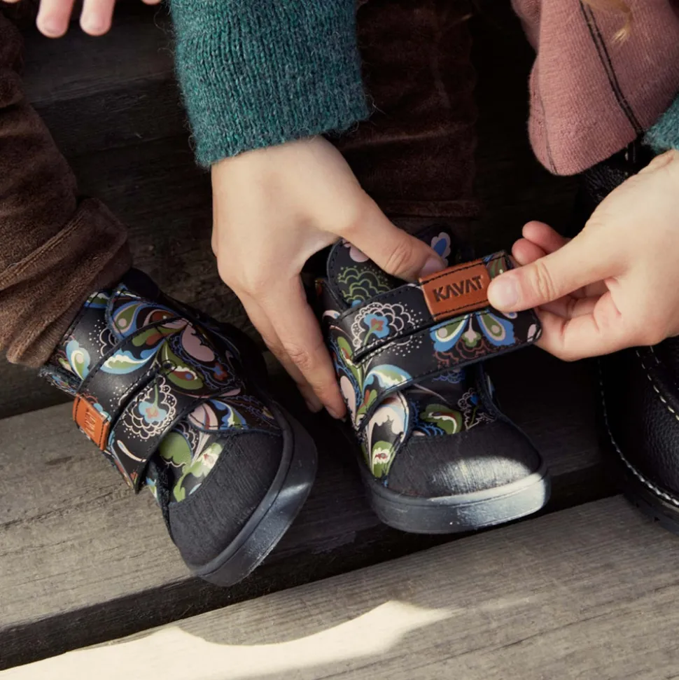 Kavat vinterstøvlerne er designet med et mellemhøjt skaft, der går op over anklerne og giver god støtte og beskyttelse mod kulde og sne. Støvlerne lukkes nemt og sikkert med en bred velcrorem over vristen, hvilket gør dem lette at tage af og på – også for de mindste.
